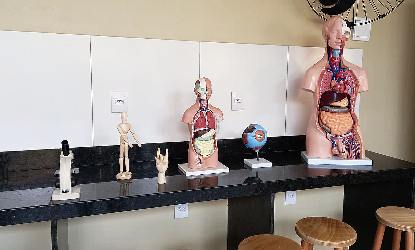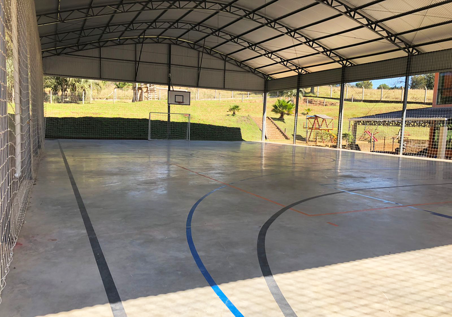 Então, o Colégio Pró-Futuro foi projetado e construído com paredes termo-acústicas de gesso acartonado, lousa com formato diferenciado (oval) e de cor clara, sala de atividades multiplas para balé, capoeira, teatro e ginástica olímpica, laboratório de informática com lousa interativa e microscópio digital, locais para salas de aulas ao ar livre, hortas orgânicas, parquinho com madeiramento ecológico, galpão crioulo, quadra poliesportiva, corredor amplo que pode unir-se ao refeitório e transformar-se salão de festas, iluminação natural com janelas e paredes de vidro integrando o aluno com a natureza, torneiras automáticas e sanitários com água regulada, com foco na economia dos recursos naturais, copos e toalhas descartáveis, sabonete líquido e álcool gel em pontos estratégicos.